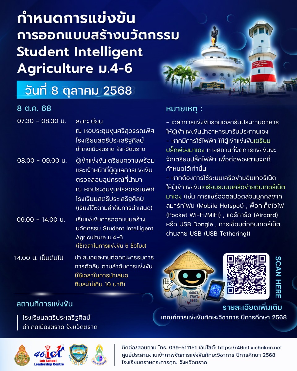 ประกาศ กำหนดการแข่งขัน การสร้างเกมด้วยการออกแบบสร้างนวัตกรรม Student Intelligent Agriculture ม.4-6
