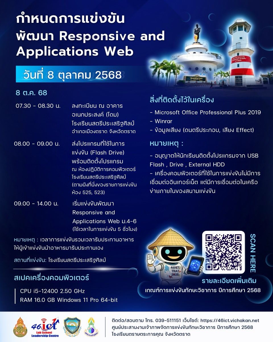 ประกาศ กำหนดการแข่งขัน พัฒนา Responsive and Applications Web