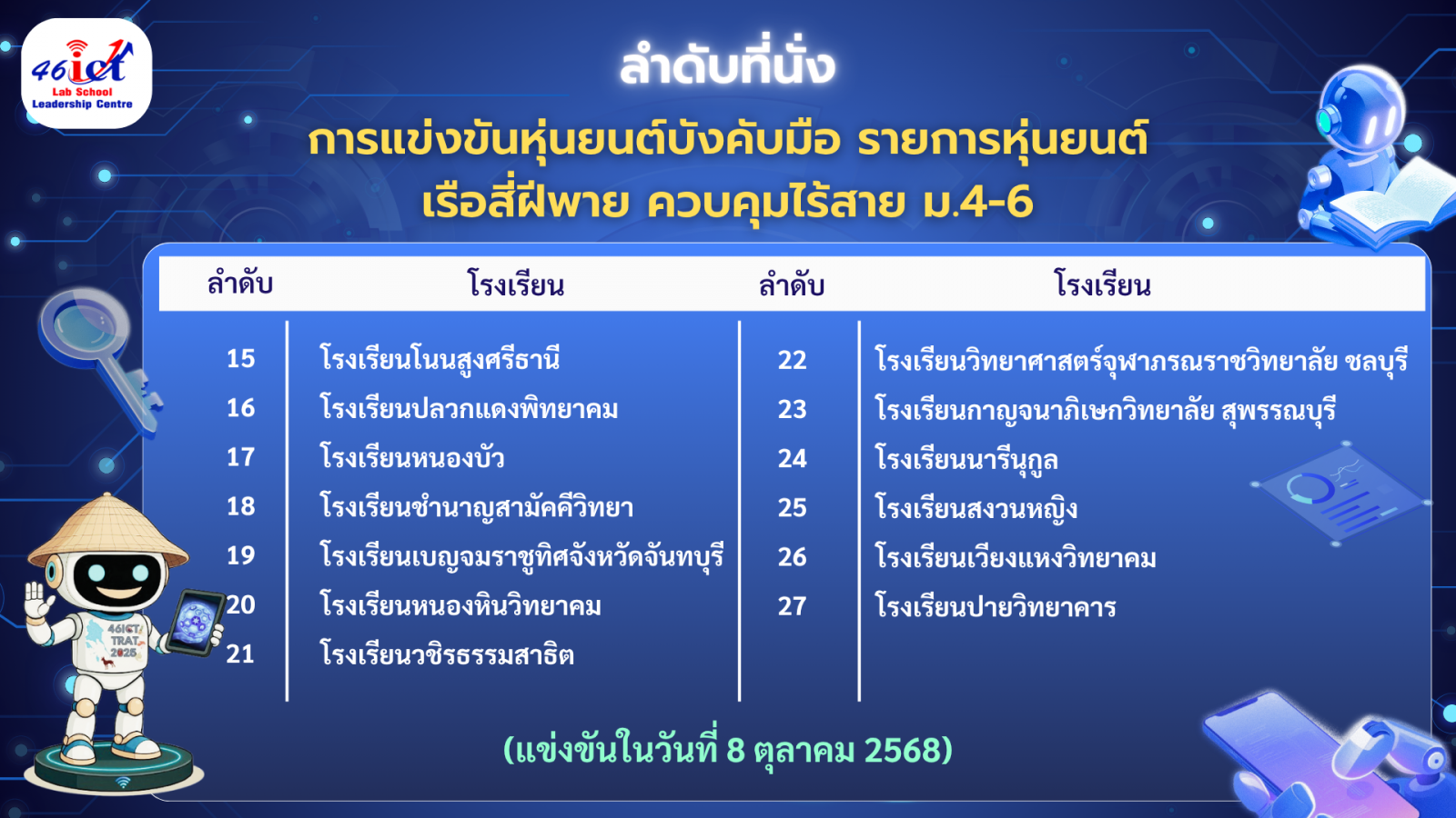 ขอเชิญคุณครูผู้รับผิดชอบรายการแข่งขันหุ่นยนต์ทุกรายการ เข้าร่วมประชุมในวันที่ 7 กรกฎาคม 2568 เพื่อชี้แจงทำความเข้าใจในรูปแบบออนไลน์ผ่าน Google Meet เวลา 08.30 น. เริ่มประชุมเวลา 09.00 น. โดยเจ้าหน้าที่จะแจ้งช่องทางการเข้าประชุมผ่านทางเว็บไซต์และกลุ่มไลน์