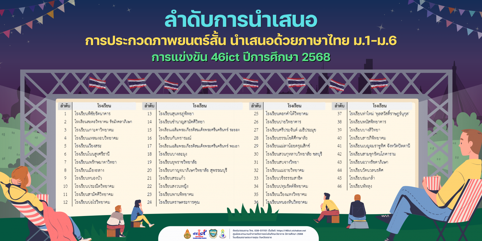 ประกาศ รายการการแข่งขันการประกวดภาพยนตร์สั้น “บูรณาการภาษาไทย” ม.1-ม.6