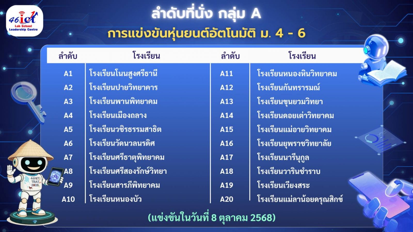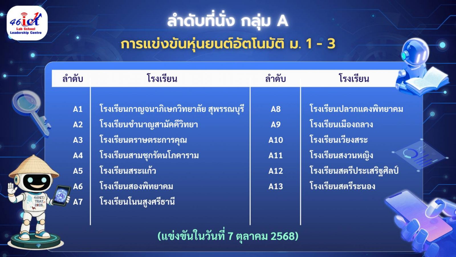 ลำดับที่นั่งการแข่งขันหุ่นยนต์อัติโนมัติ สถานที่อาคารอเนกประสงค์