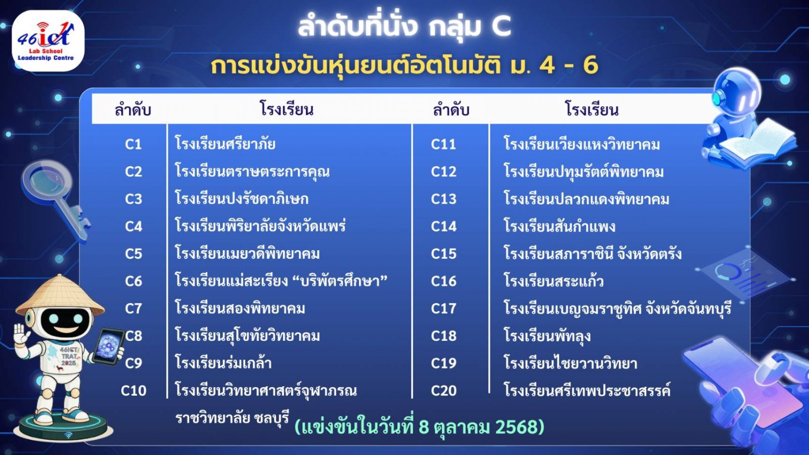 ลำดับที่นั่งการแข่งขันหุ่นยนต์เรือสี่ฝีพาย สถานที่หอประชุม 1