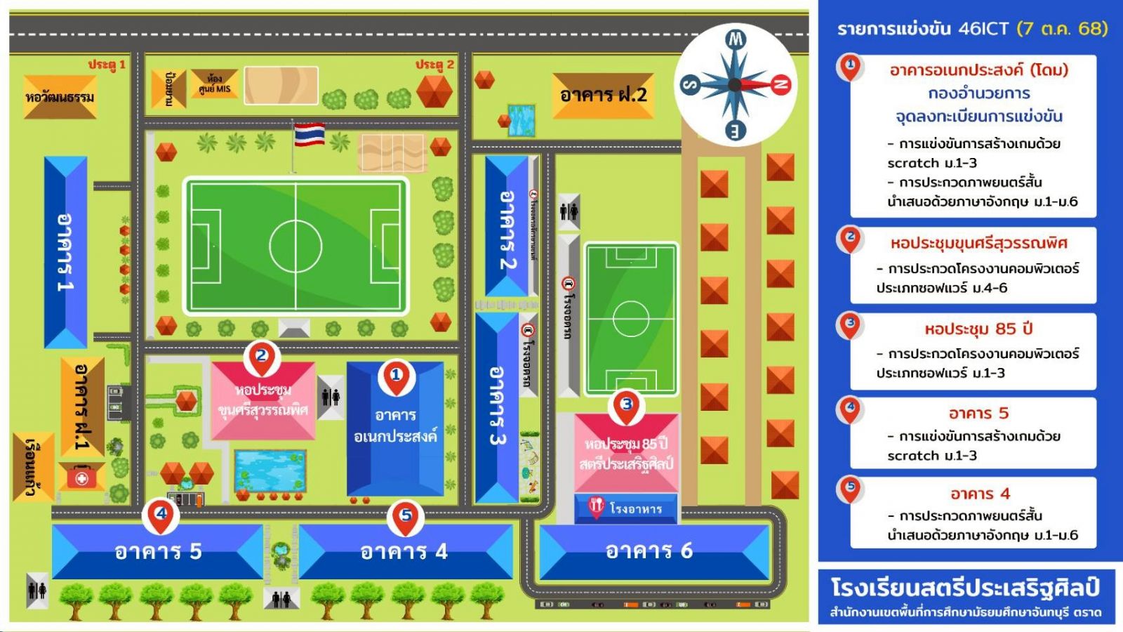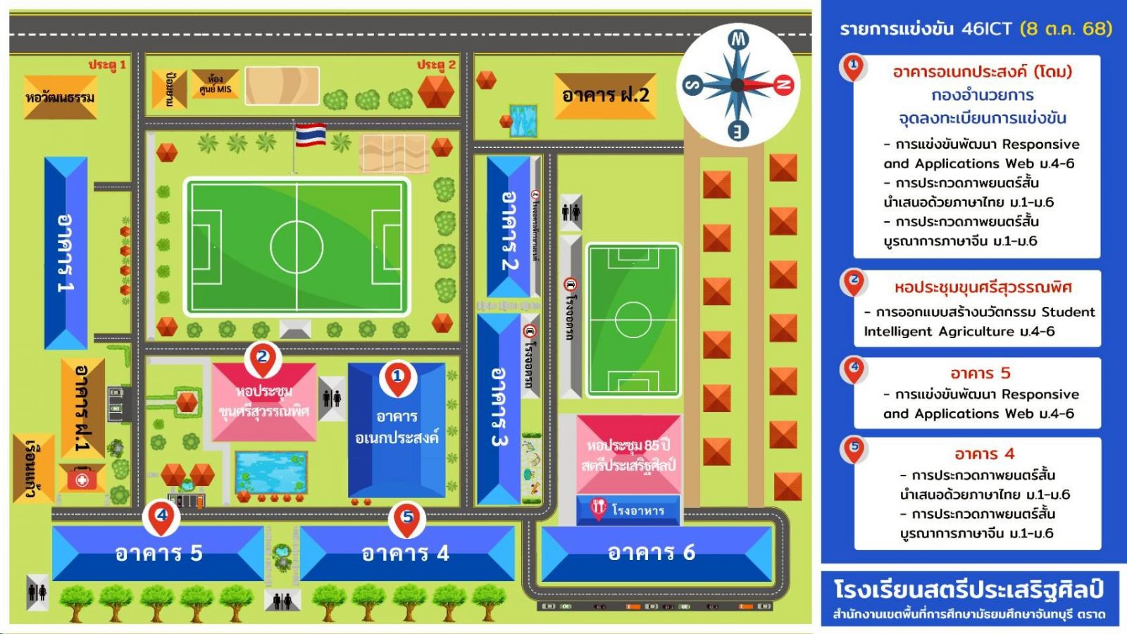 แผนผังสถานที่แข่งขันรายการที่จัดแข่งขันที่โรงเรียนสตรีประเสริฐศิลป์