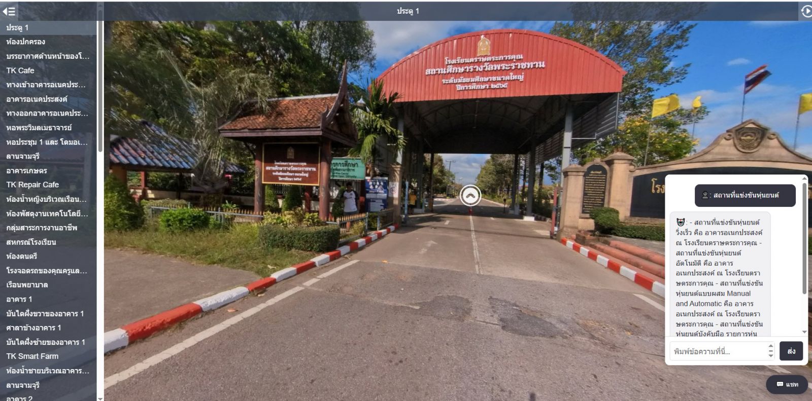 สำรวจแผนที่ภายในโรงเรียนโรงเรียนตราษตระการคุณ แบบพาโนรามา 360 องศา พร้อมระบบแชตบอตอัจฉริยะ